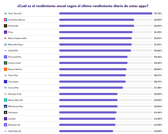 De acuerdo con el relevamiento de la consultora Trascendo, el primer puesto lo ocupa Taca Taca, con una tasa del 43,80%, el rendimiento más alto entre las opciones disponibles.