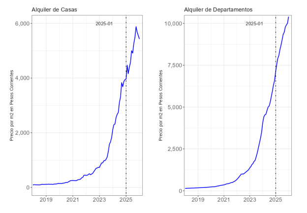 Un punto clave del informe es la evolución de la oferta. En comparación con noviembre de 2023, último mes de vigencia de la ley de alquileres, la cantidad de casas en alquiler creció 45,1% y la de departamentos 92,6%. Sin embargo, los datos más recientes sugieren una desaceleración: en enero de 2026, la oferta cayó 1,8% en casas y 7,5% en departamentos respecto del mes anterior.