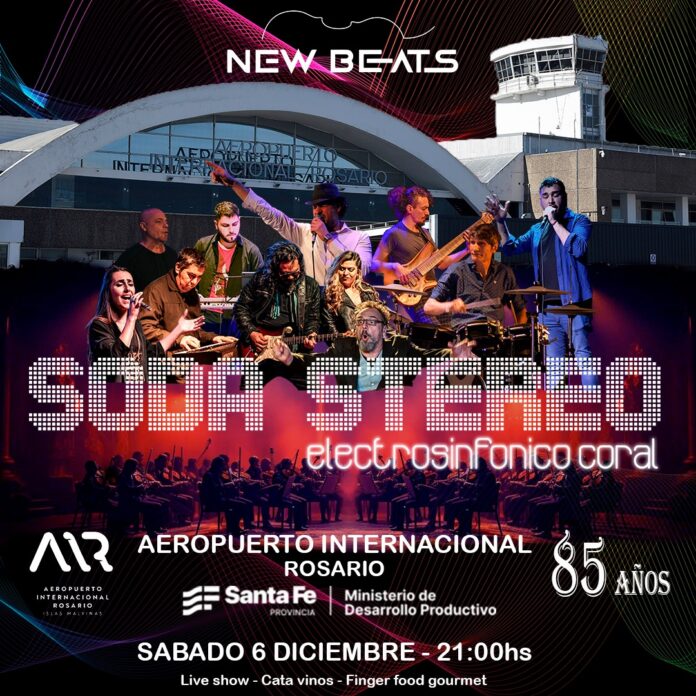 En el marco de los festejos por sus 85 años de historia, el Aeropuerto Internacional de Rosario se transformará en escenario a cielo abierto con una propuesta artística inédita: New Beats Electro Sinfónico Solidario, un espectáculo que fusiona rock nacional con orquesta sinfónica y coro, con versiones de Soda Stereo.