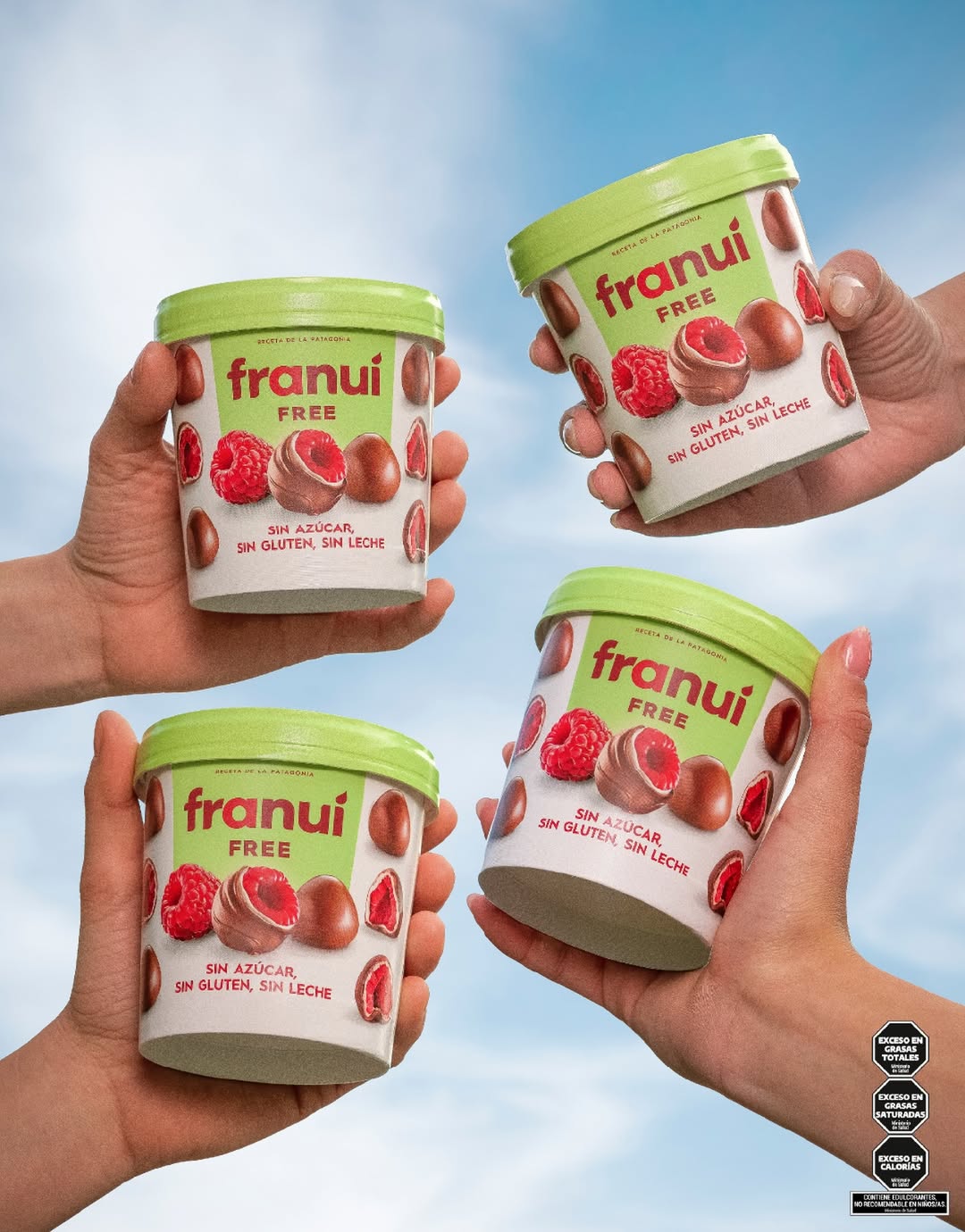 Franuí Free mantiene la estructura que hizo famoso al producto: frambuesas frescas bañadas en dos capas de chocolate. La diferencia está en su formulación 100% de origen vegetal, sin conservantes, colorantes ni esencias artificiales. Una opción pensada para quienes tienen intolerancias, siguen dietas cetogénicas o simplemente prefieren opciones más naturales.