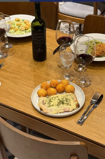 La propuesta de La Cuchara Colorada combina recetas clásicas con algunos guiños contemporáneos. La carta comienza con entradas pensadas para compartir, como empanadas de matambre cortado a cuchillo con salsa yasgua, croquetas de humita y queso grana padano, buñuelos de espinaca y provolone o rabas con salsa tártara.