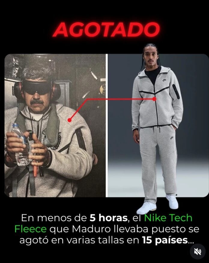La escena recorrió el mundo en cuestión de minutos. Mientras la agenda internacional se concentraba en el arresto de Nicolás Maduro, un detalle inesperado capturó la atención del mercado global: el conjunto Nike Tech Fleece que llevaba puesto se transformó en un fenómeno comercial sin precedentes recientes para la industria de la indumentaria deportiva.